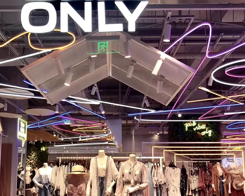 Is Only's most young fashion style of the deputy. A design concept of youth and vitality, bold and light treason. Lighting design with light to create an atmosphere, but does not interfere with commercial performance; model and other key display need regular light.